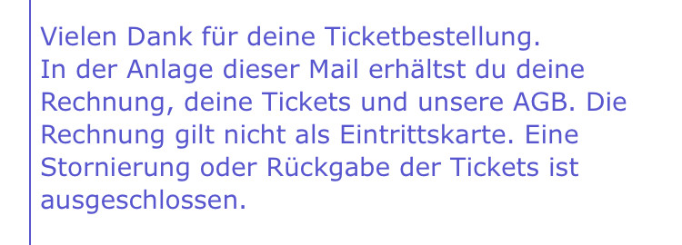 Zu 2) Die Leute die Tickets online gekauft haben, haben derzeit nur eine Rechnung. Darum Ticketausgabe auch vor Ort.