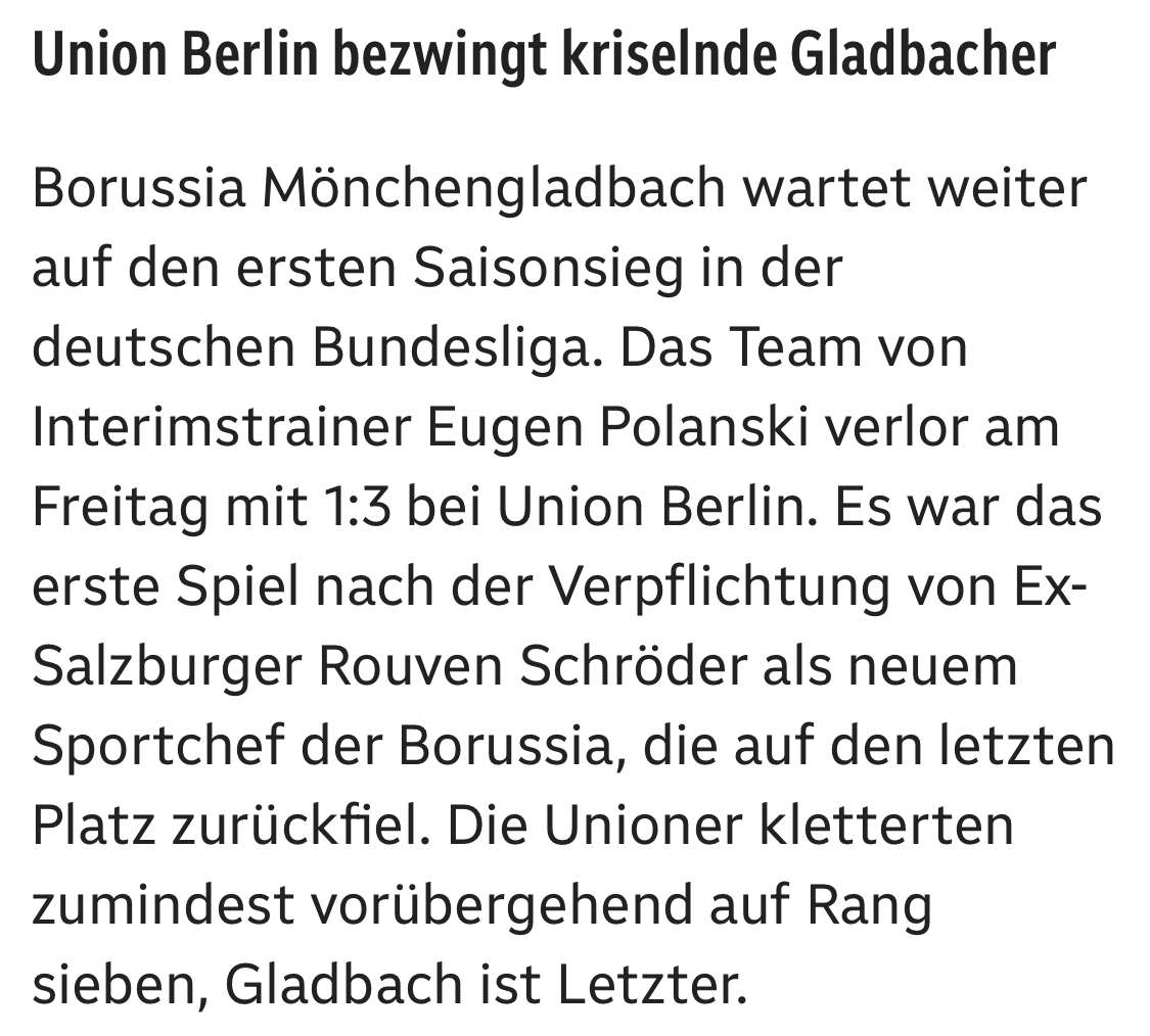 Dabei gibt es eigentlich für die Fans eh keinen Grund, salty zu sein. Oder glaubt jemand, dass es mit Schröder demnächst die große Wende gegeben hätte und er die quasi durch seinen Abgang verhindert bzw. uns vorenthalten hat?