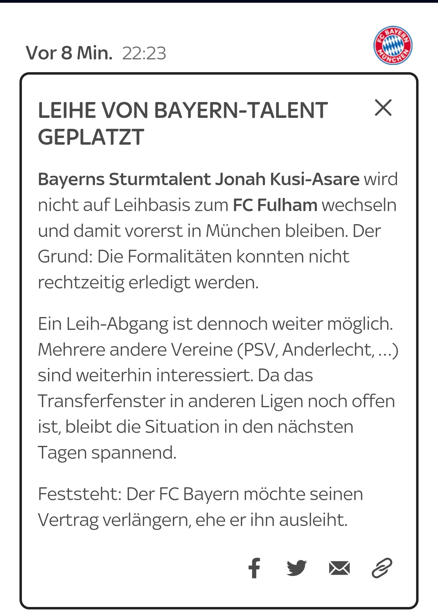 Der ist noch nicht so gut, dass er eine Soforthilfe wäre, dafür wäre er aber relativ teuer. Eine Leihe ohne KO, was anderes lässt Bayern nicht zu, wäre noch sinnloser. Bei den Profis hat er eigentlich noch nicht wirklich gespielt.