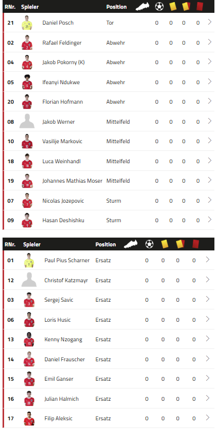 salzmann https://www.oefb.at/oefb/Spiel/Aufstellung/3988024/?Oesterreich-vs-Japan die Aufstellung für das Viertelfinale gegen Japan. Feldinger, Pokorny, Hofmann, Werner, Moser und Jozepovic starten. Ganser und Aleksic sitzen zunächst auf der Bank