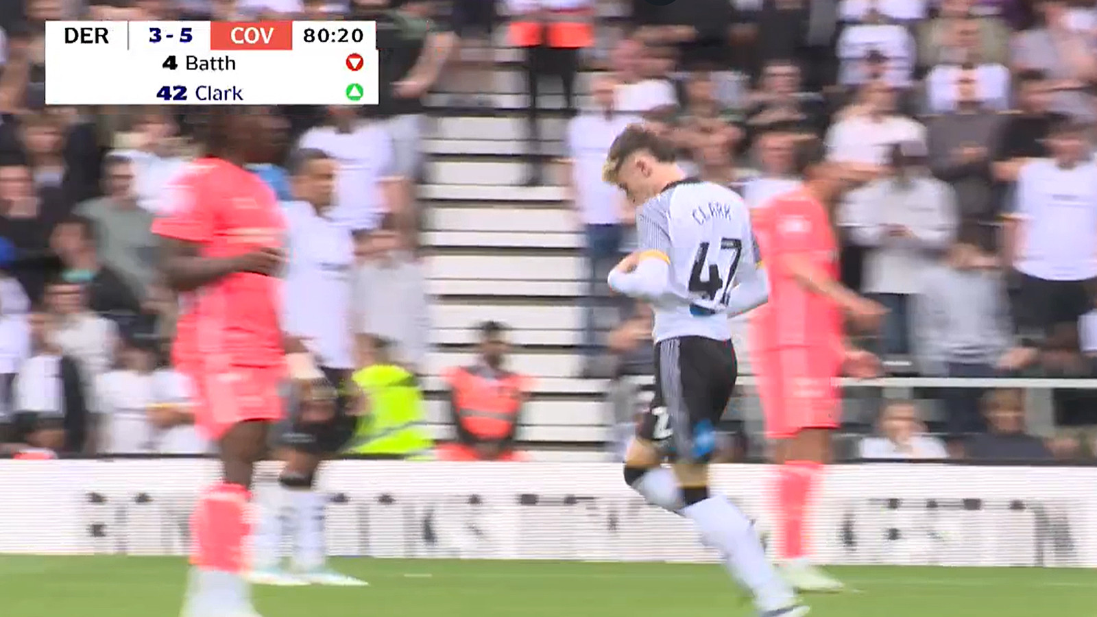 chrischinger86 Clark wird gut zehn Minuten vor dem Ende beim Stand von 3:5 aus Sicht von Derby County eingewechselt.