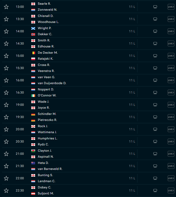 pascalp1933 salzmann Rydz gewinnt morgen gegen Humphries 🙏 Mit Gilding und Springer zwei Favoriten in ihren jeweiligen Begegnungen raus, Nijman kann man da eigentlich auch dazu zählen