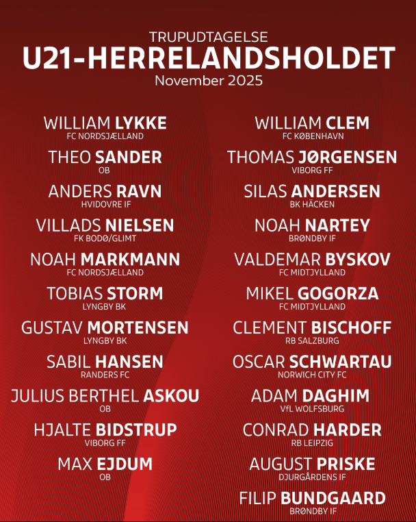 Auf Abruf: Konstantin Aleksa (FK Austria Wien), Belmin Beganovic (SK Puntigamer Sturm Graz), Yanis Eisschill (SKU Ertl Glas Amstetten), Maximilian Fillafer (TSV Egger Glas Hartberg), Kenan Jusic (FK Austria Wien), Juri Kirchmayr (FAC Wien), Florian Micheler (DSC Arminia Bielefeld/GER), Moritz Neumann (FAC Wien), Dejan Radonjic (FK Austria Wien), Jannik Robatsch (FC St. Pauli/GER), Fabian Rossdorfer (SV Oberbank Ried), Nikola Sarcevic (FC Liefering), Matteo Schablas (FK Austria Wien)