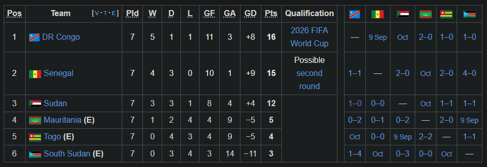 Mit Mauritanien und Togo stehen relative schwache Gegner vor der Brust. Zum Abschluss geht es nochmal auswärts gegen die DR Kongo, welche auch noch das direkte Duell mit dem Senegal haben.