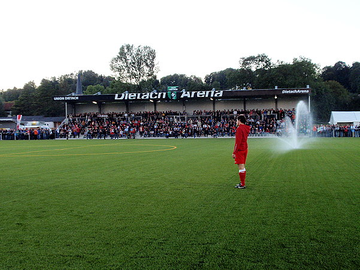 Forsti37 Felix_09 Kann halt leider gut sein, dass wir das in Steyr spielen, dort war ich sogar schon am Cupmatch DietachArena: Kunstrasenplatz: überdachte Tribüne für 360 Sitz- und ca. 240 Stehplätze asphaltierte Stehplätze rund um das Spielfeld für ca. 2000 Besucher Flutlicht (zugelassen für Spiele bis zur Regionalliga) automatische Bewässerungsanlage Naturrasenplatz: Tribühne für ca. 350 Sitz- und 100 Stehplätze