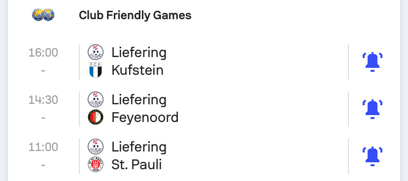 Kann mir nicht vorstellen, dass die in Grödig an 1 Tag 3 Testspiele abwickeln, noch dazu wäre um 16h10 Testspiel 2 gar nicht vorbei 🤔