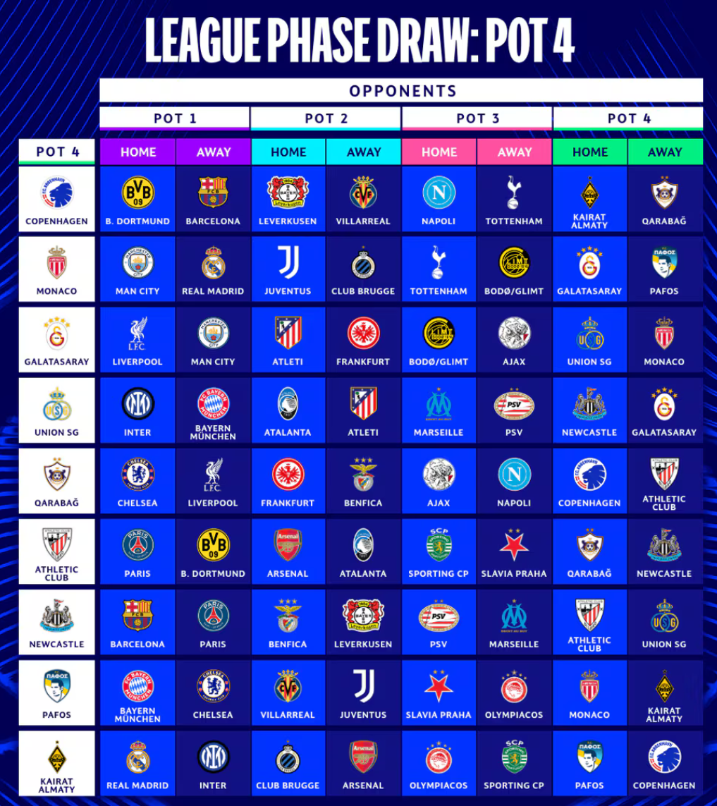 Vertikal ist die Mannschaftsstärke, horizontal der Lostopf (der österreichische Vertreter auf 0).