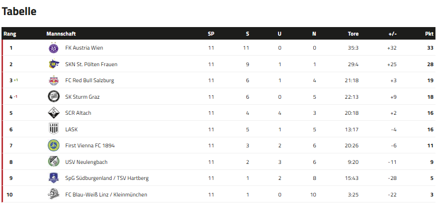 salzmann https://www.oefb.at/oefb/Bewerbe/Frauen/ADMIRAL-Frauen-Bundesliga/Tabelle Mit dem Sieg stehen wir nun in der Tabelle auf Platz 3 und machen einen wichtigen Schritt Richtung Meistergruppe