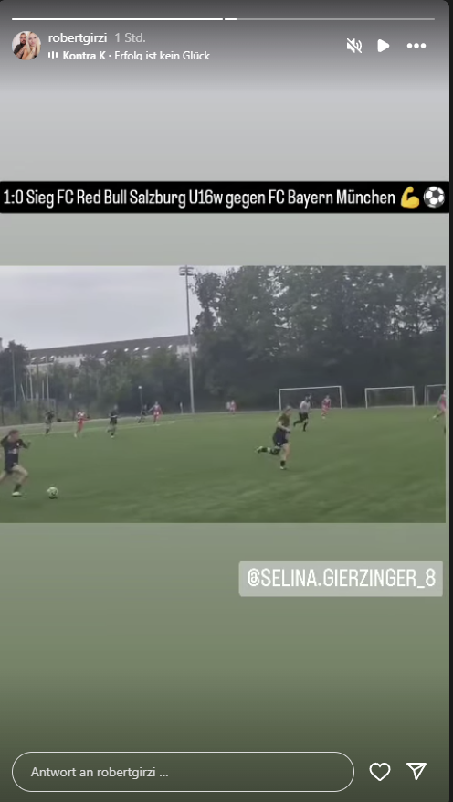 salzmann https://www.oefb.at/bewerbe/Spiel/Spielbericht/3953011/?FC-Red-Bull-Salzburg-U16-FR-vs-SV-Groedig-U14 unsere U16 verliert ihr Testspiel gegen die U14 Burschen von Grödig mit 1:2. Torschütze: Lena Hafner
