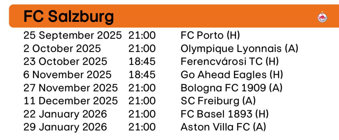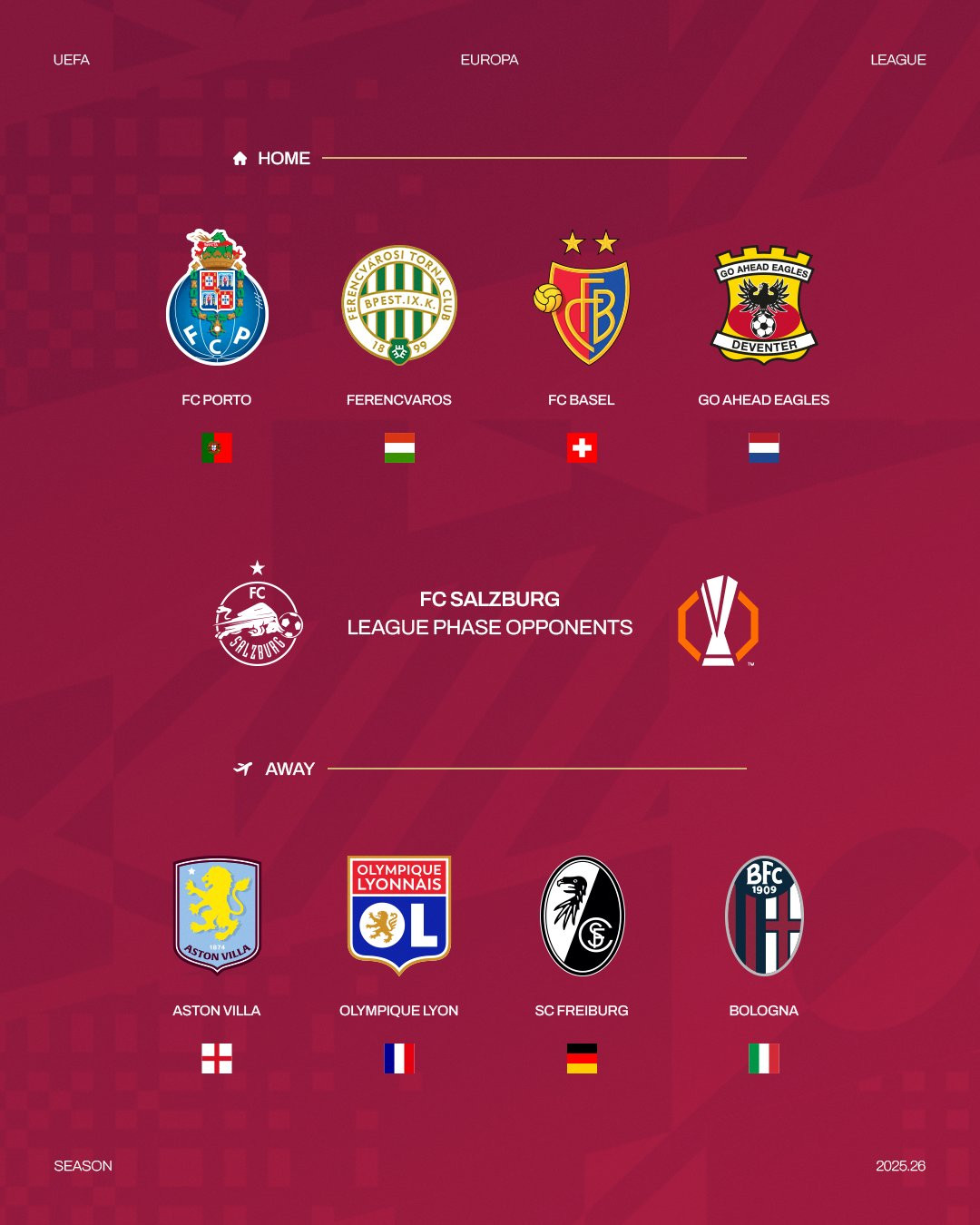 Chriti12 Alles zu den Europacup-Reisen hier rein! Die Gegner: Die Spieltermine: Hier der Link zu allen Auswärtsreise-Angeboten im Überblick: https://www.redbullsalzburg.at/de/aktuelles/auswaertsinfo/uefa-europa-league-2025-26-ligaphase