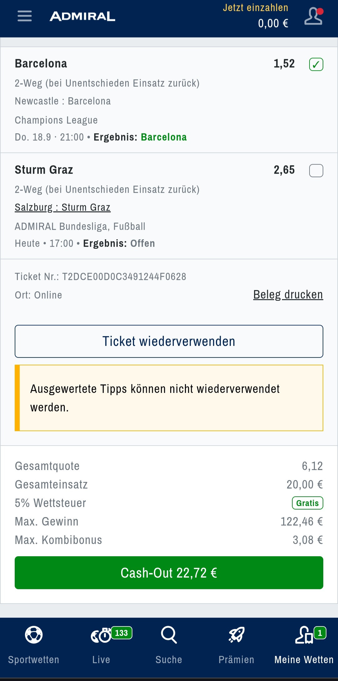 Johannes031 Bulli13 Leverkusen hats verkackt ein bisschen Sollte Sturm das heute holen sinds 80€ Lieber wär mir aber wenn da heute kein Gewinn drauf ist😉