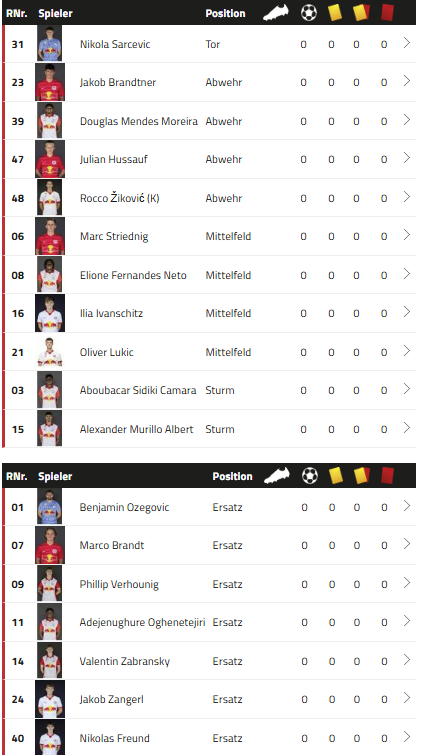 salzmann https://www.oefb.at/bewerbe/Spiel/Aufstellung/3886056/?FC-Liefering-vs-KSV-1919 Entwarnung bei Lukic. Nach seiner verletzungsbedingten Auswechslung letzte Woche ist er heute wieder mit dabei. Außerdem steht Neto heute in der Startelf