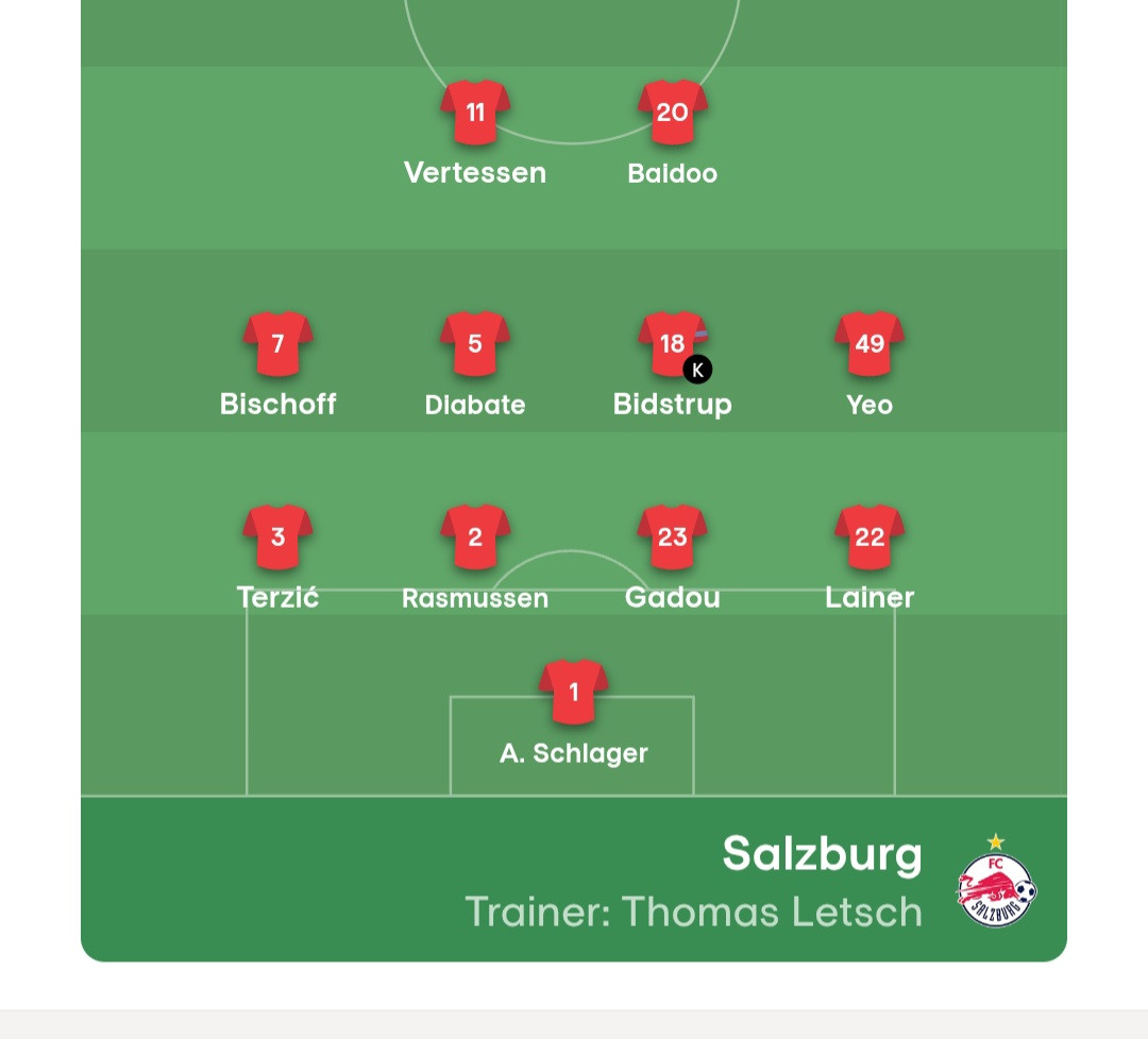 chrischinger86 Aufstellungen: https://www.uefa.com/uefaeuropaleague/match/2046241--bologna-vs-salzburg/ Mit Gadou und Bischoff, Bidstrup auch von Beginn an dabei